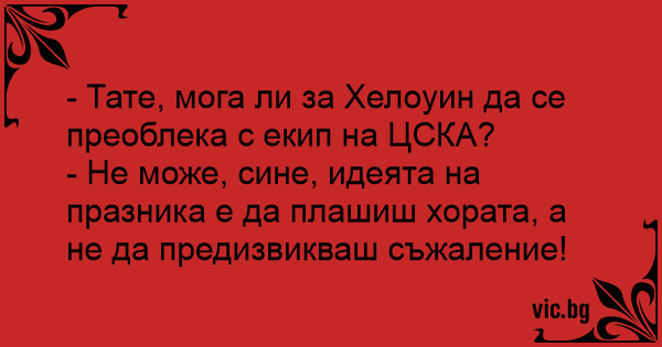 - Тате, мога ли за Хелоуин да се преоблека с екип на ЦСКА?