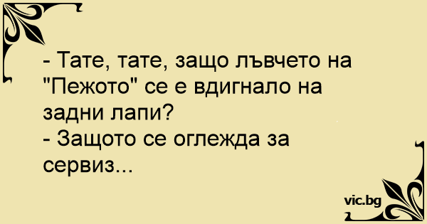 - Тате, тате, защо лъвчето на "Пежото" се е вдигнало на задни лапи?