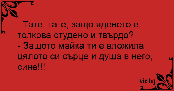 - Тате, тате, защо яденето е толкова студено и твърдо?