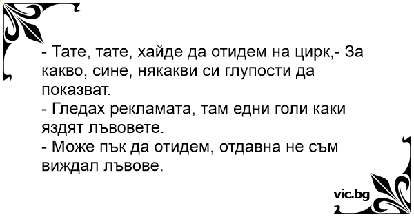 - Тате, тате, хайде да отидем на цирк,- За какво, сине, някакви си глупости да показват.