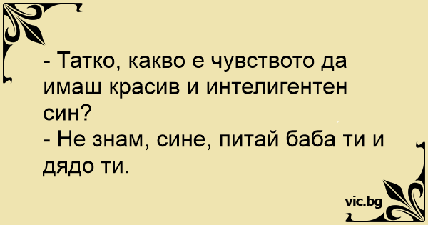 - Татко, какво е чувството да имаш красив и интелигентен син?