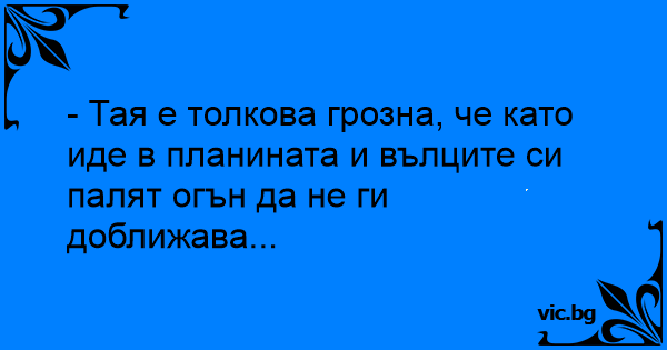 - Тая е толкова грозна, че като иде в планината и вълците си палят огън да не ги доближава...