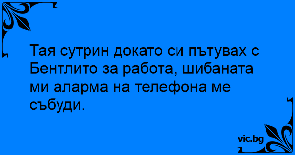 Тая сутрин докато си пътувах с Бентлито за работа, шибaнata ми аларма на телефона ме събуди.