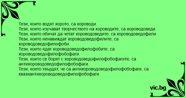 Тези, които ядат хороводоведофилофобите, са хороводоведофилофобофаги.
