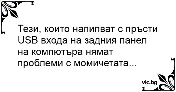 Тези, които напипват с пръсти USB входа на задния панел на компютъра нямат проблеми с момичетата...