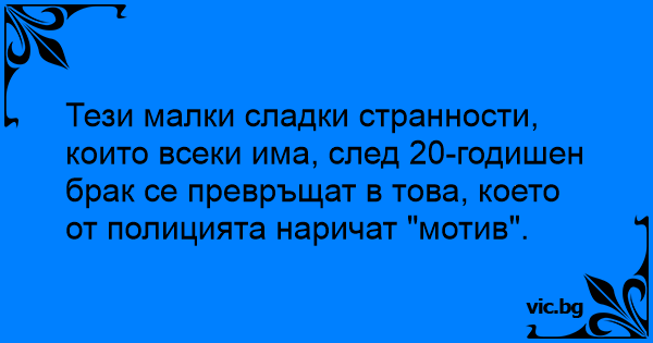 Тези малки сладки странности, които всеки има, след 20-годишен брак се превръщат в това, което от полицията наричат "мотив".