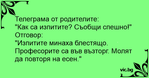 • Вицове от Facebook от нашата страница https://www.facebook.com/www.vic.bg