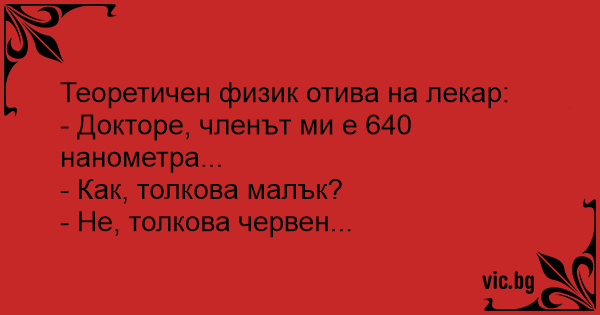 - Докторе, члeнъt ми е 640 нанометра...