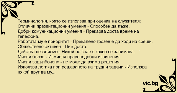 Терминология, която се използва при оценка на служителя: