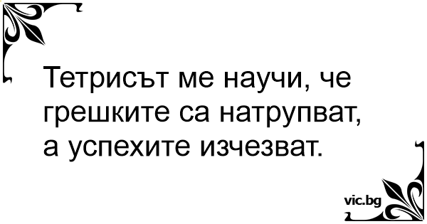 Тетрисът ме научи, че грешките са натрупват, а успехите изчезват.