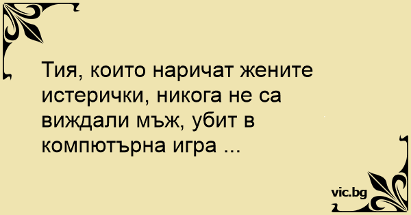 Тия, които наричат жените истерички, никога не са виждали мъж, убит в компютърна игра ...