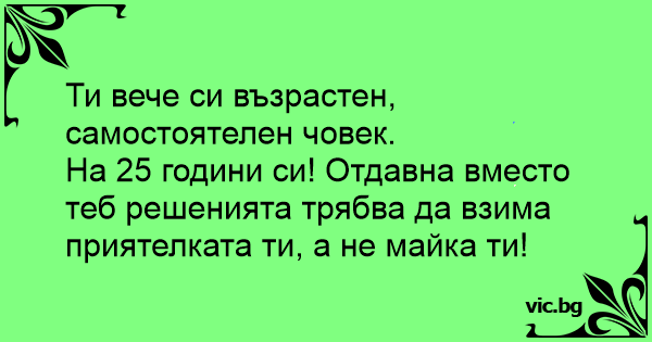 На 25 години си! Отдавна вместо теб решенията трябва да взима приятелката ти, а не майка ти!