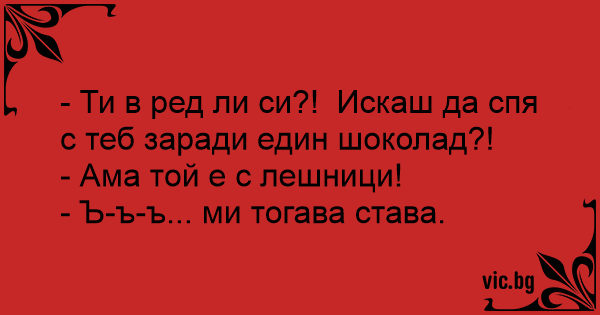- Ти в ред ли си?! Искаш да спя с теб заради един шоколад?!