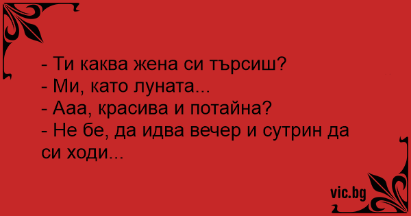 - Ти каква жена си търсиш?...