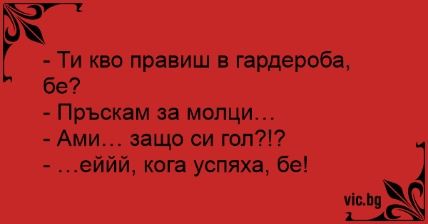 - Скъпи, защо си толкова подозрителен?! Не може да виждаш любовник във всеки мъж, седящ в гардероба!