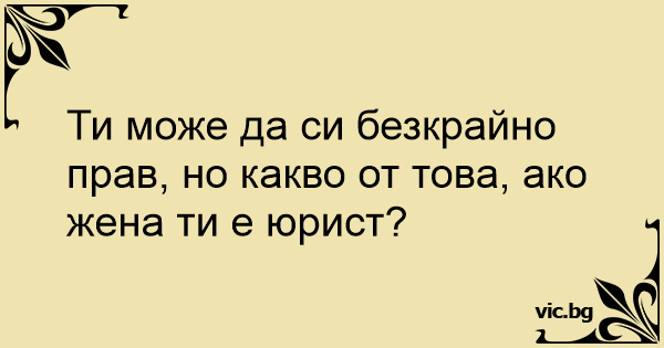Ти може да си безкрайно прав, но какво от това, ако жена ти е юрист?
