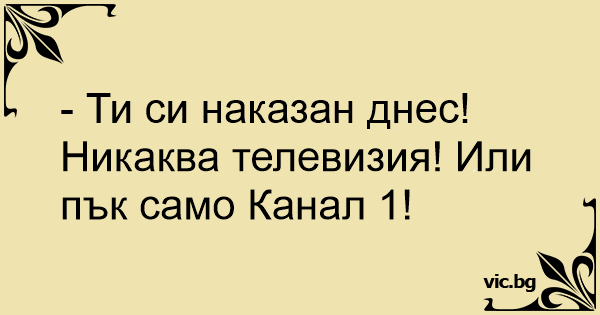 - Ти си наказан днес! Никаква телевизия! Или пък само Канал 1!