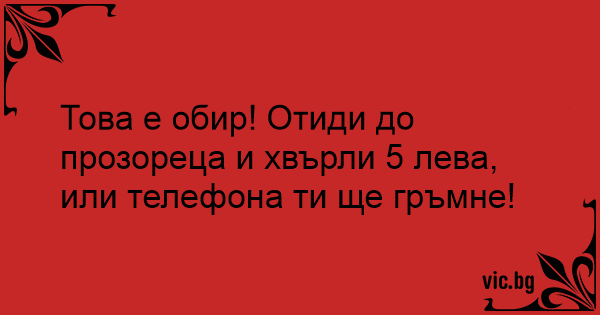 Това е обир! Отиди до прозореца и хвърли 5 лева, или телефона ти ще гръмне!