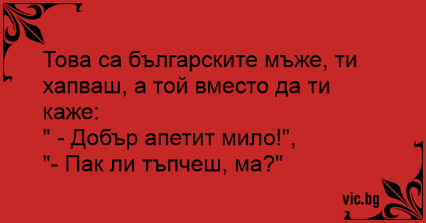Това са българските мъже, ти хапваш, а той вместо да ти каже: