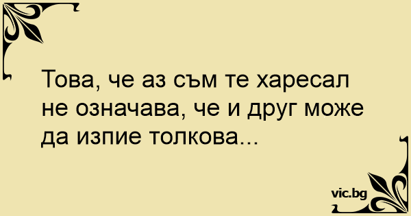 Това, че аз съм те харесал не означава, че и друг може да изпие толкова...