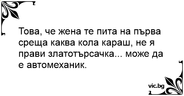 Това, че жена те пита на първа среща каква кола караш, не я прави златотърсачка... може да е автомеханик.
