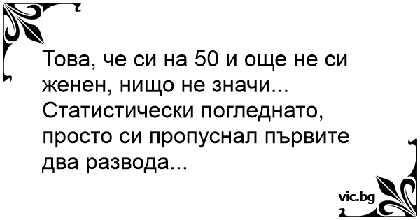 Това, че си на 50 и още не си женен, нищо не значи... Статистически погледнато, просто си пропуснал първите два развода...