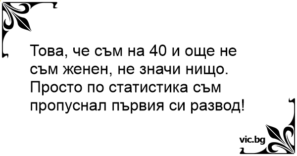Това, че съм на 40 и още не съм женен, не значи нищо. Просто по статистика съм пропуснал първия си развод!