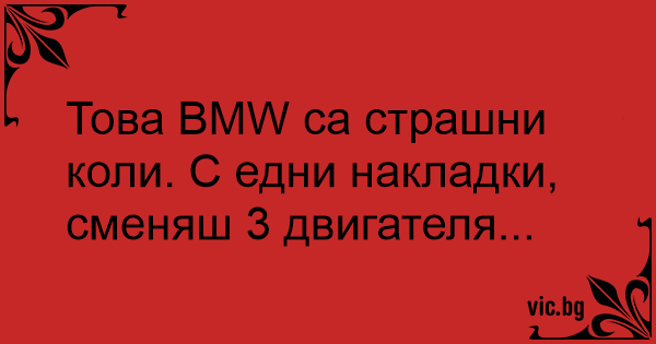 Това BMW са страшни коли. С едни накладки, сменяш 3 двигателя...