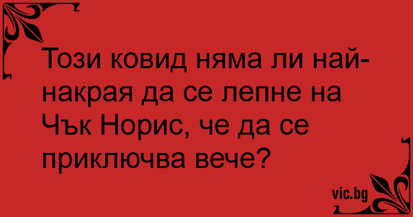 Този ковид няма ли най-накрая да се лепне на Чък Норис, че да се приключва вече?