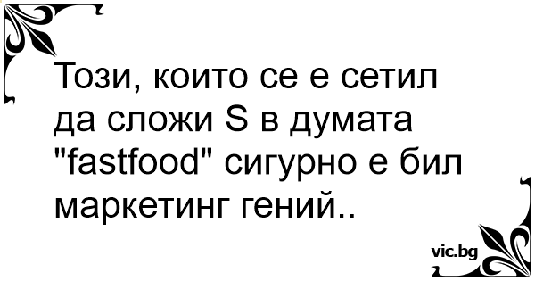 Този, които се е сетил да сложи S в думата "fastfood" сигурно е бил маркетинг гений..