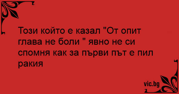 Този който е казал "От опит глава не боли " явно не си спомня как за първи път е пил ракия