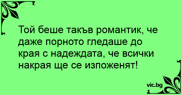 Той беше такъв романтик, че даже порното гледаше до края с надеждата, че всички накрая ще се изпоженят!