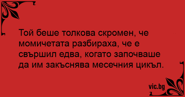 Той беше толкова скромен, че момичетата разбираха, че е свършил едва, когато започваше да им закъснява месечния цикъл.