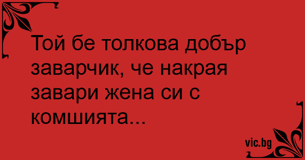 Той бе толкова добър заварчик, че накрая завари жена си с комшията...