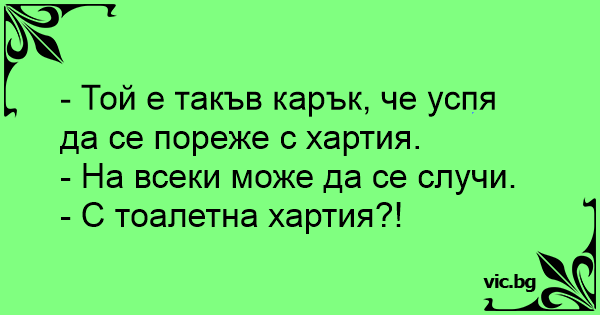 - Той е такъв карък, че успя да се пореже с хартия.