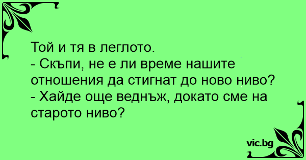 - Скъпи, не е ли време нашите отношения да стигнат до ново ниво?