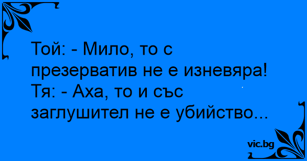 Тя: - Аха, то и със заглушител не е убийство...