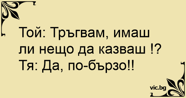 • Вицове от Facebook от нашата страница https://www.facebook.com/www.vic.bg