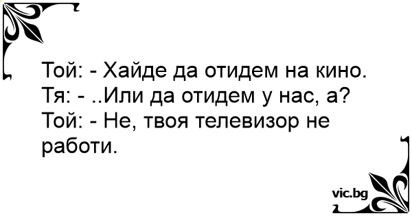 Той: - Не, твоя телевизор не работи.