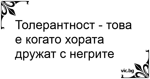 Толерантност - това е когато хората дружат с негрите