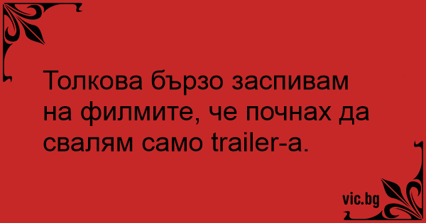 Толкова бързо заспивам на филмите, че почнах да свалям само trailer-а.