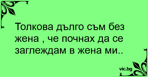 Толкова дълго съм без жена , че почнах да се заглеждам в жена ми..