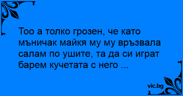 Тоо а толко грозен, че като мъничак майкя му му връзвала салам по ушите, та да си играт барем кучетата с него ...