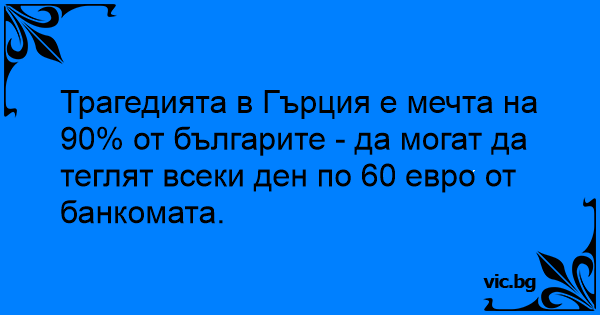 Трагедията в Гърция е мечта на 90% от българите - да могат да теглят всеки ден по 60 евро от банкомата.