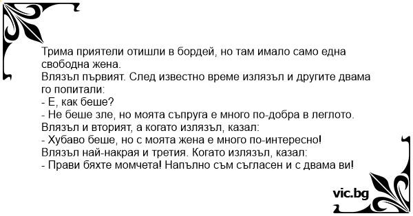 - Не беше зле, но моята съпруга е много по-добра в леглото.