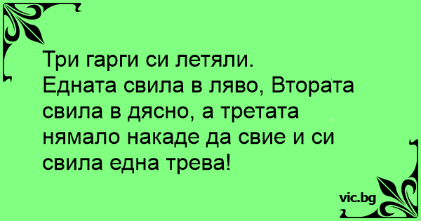 Едната свила в ляво, Втората свила в дясно, а третата нямало накаде да свие и си свила една трева!
