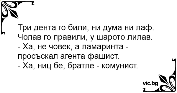 • Вицове от Facebook от нашата страница https://www.facebook.com/www.vic.bg