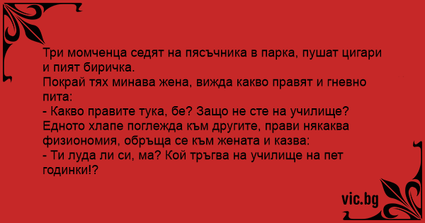 • Вицове от Facebook от нашата страница https://www.facebook.com/www.vic.bg