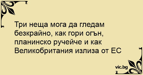 Три неща мога да гледам безкрайно, как гори огън, планинско ручейче и как Великобритания излиза от ЕС
