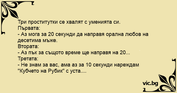 - Аз мога за 20 секунди да направя орална любов на десетима мъже.